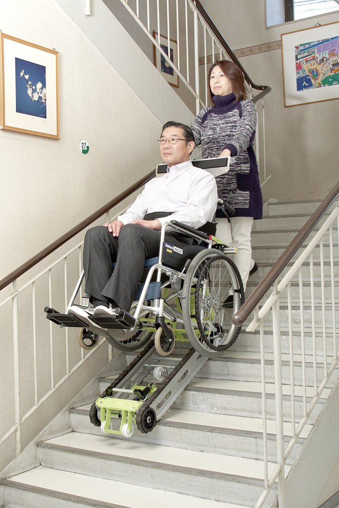 新製品 車いす用階段避難車「チェアキャリダン」出展します。 試乗及び操作を実際に体験できますので、是非お立ち寄りください。(小間番号:1012)
